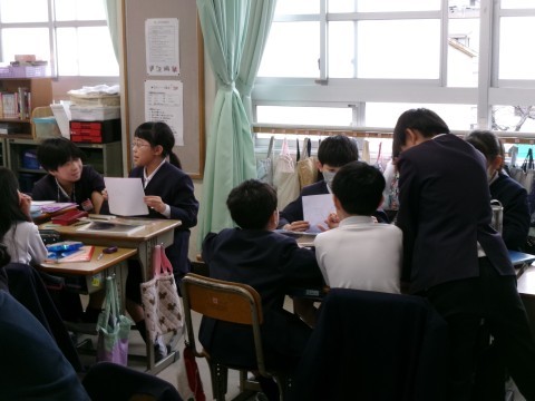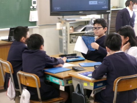 国語では,ひみつの言葉を引き出そうという学習で,グループでカードを交換し,その言葉を引き出そうと楽しく対話を行っていました。