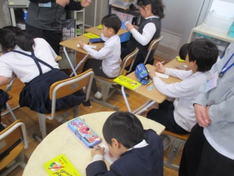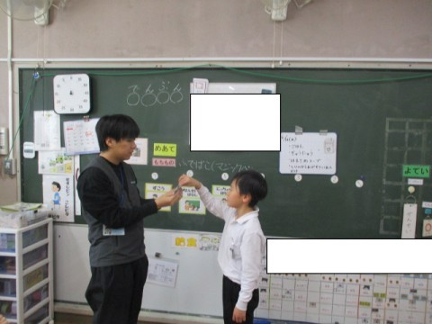今日の朝の会は図工で日直カードを作りました。それぞれオリジナルの一品を作ることができました。
