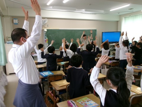 3年 外国語活動 4/20(月) 公開日 2026/04/20 更新日 2026/04/20 3年生 外国語活動では,「Simon says・・・」と先生の言っている英語の言葉を体全体を使って反応し,楽しく英語を学習しました。