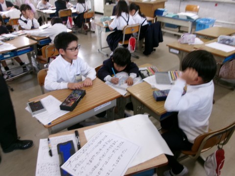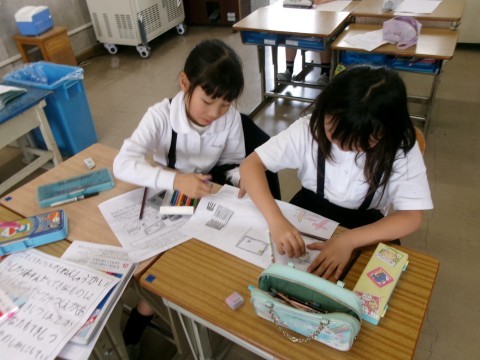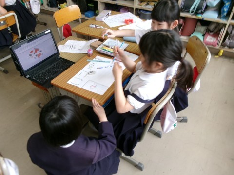 生活科では,学校たんけんに向けて,グループで学校にある教室や特別教室のポスターを作っていました。