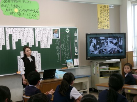 国語では,「いきる」(谷川俊太郎)の詩を読んで素敵なところをそれぞれ表出させ,詩を創作していました。