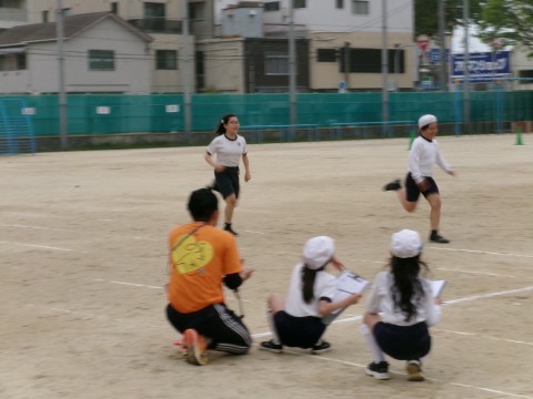 体育では,リレーの代表に向けて,体育大会で走る80m走のタイムを測っていました。