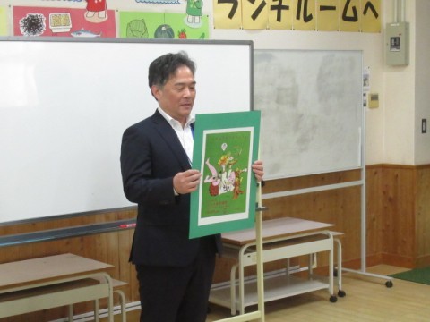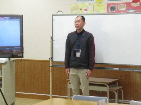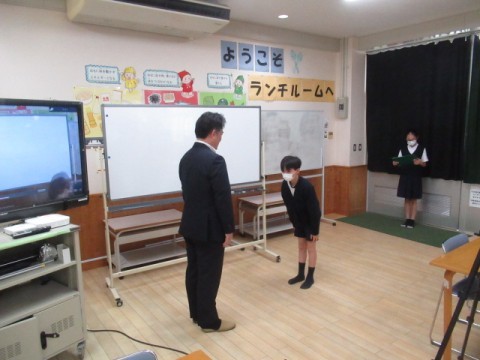 月曜朝礼がありました。校長先生の話、先生の話がありました。