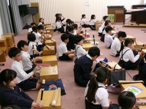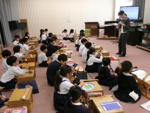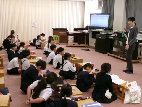 リコーダーで,「シ」の音を美しく出せるよう,一人一人の音色を確認していました。