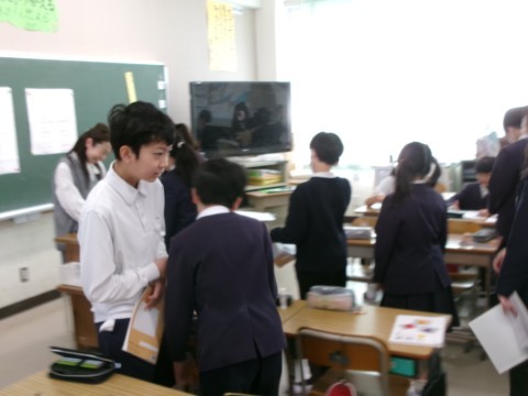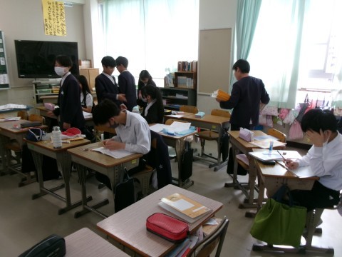 対称の復習プリントを行い,一人一人できているか確認していました。