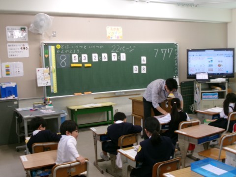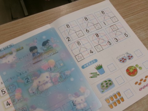 「8はいくつといくつ?」の学習では,8の数の分解をブロックなどを使って考えていました。
