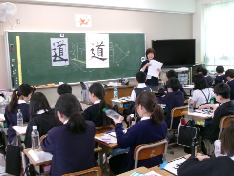 「道」という字をしんにょうのはらいに意識しながら,丁寧に書いていました。