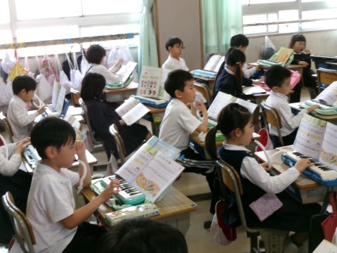 鍵盤ハーモニカで,「よろこびの歌」を演奏していました。