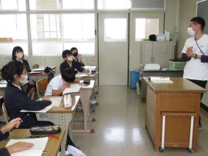 国語の授業をしたり、自己紹介のカードを書いたりしていました。