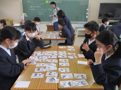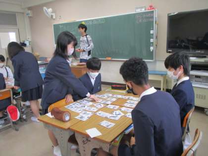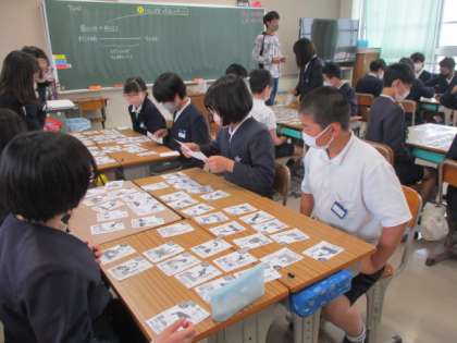 歴史上の人物をカルタを使いながら覚えていました。
