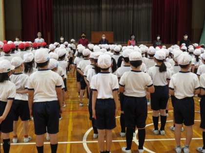 朝礼がありました。校長先生から「体育大会へ向けて」お話がありました。