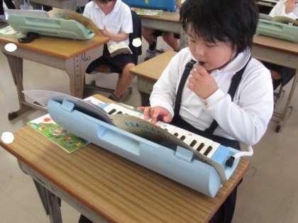 音楽をしました。タンギングの練習をしました。
