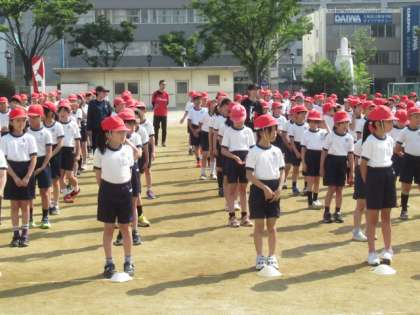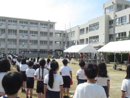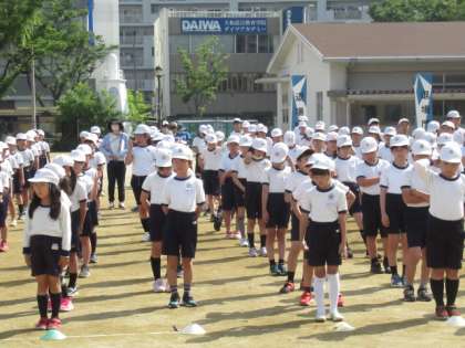 体育大会の全体練習がありました。「開会式」「閉会式」の流れを練習しました。