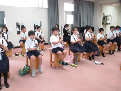 「まきばの朝」を歌ったり、「花笛」をリコーダーで演奏したりしました。