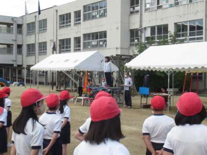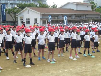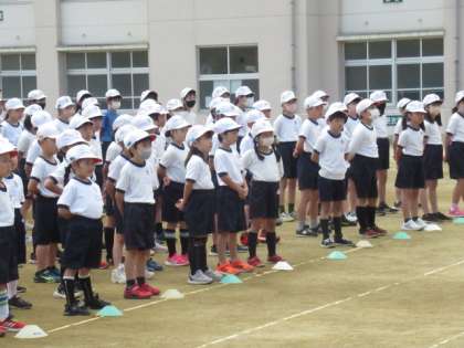 体育大会の全体練習がありました。「開会式」の流れをしました。