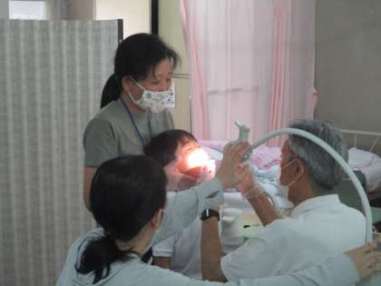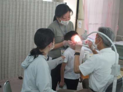 歯科検診をしました。検診のやり方通りに、口を大きく開けて校医さんに診てもらいました。