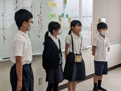 今日は校外学習を振り返り、次の学びへつなげる学年集会を行いました。