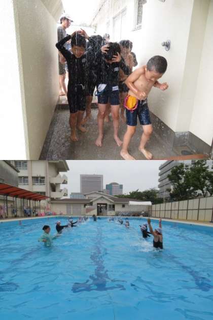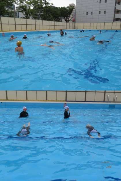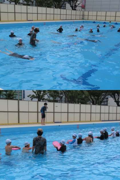 水泳運動の学習です。ストリームラインを意識して、けのびの練習をしました。