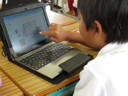「福祉」の学習を進めています。学校探検をして気づいたことを、パソコンでまとめました。
