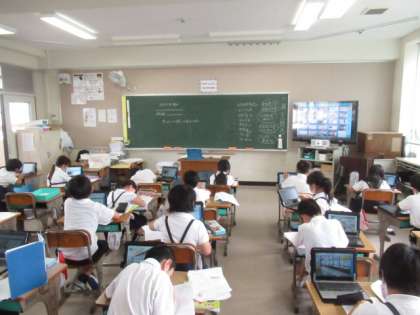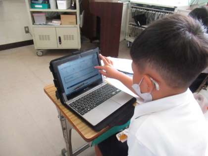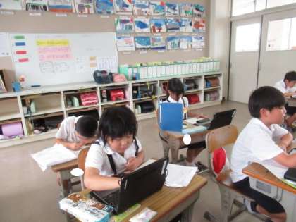 町たんけんの学習をしました。タブレットでお店を調べて、プリントにまとめました。