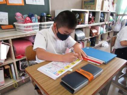 漢字の学習をしました。「路」「区」の書き順などを確認した後、ドリルに書きました。