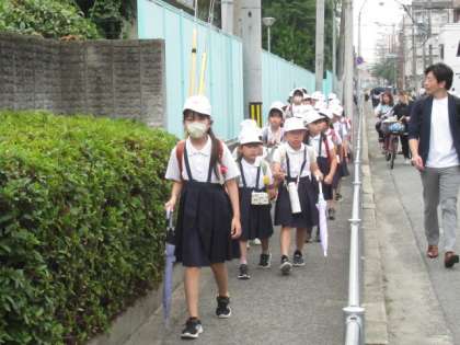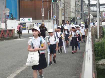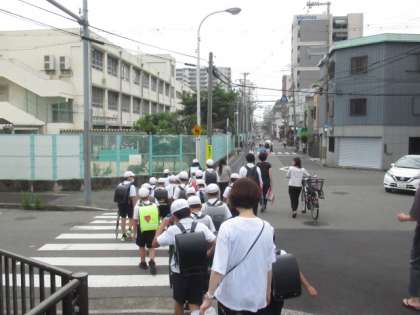 地域の方々、PTA安全防犯委員会、職員で児童の登校の安全を見守りました。朝早くからの交通安全指導、どうもありがとうございました。