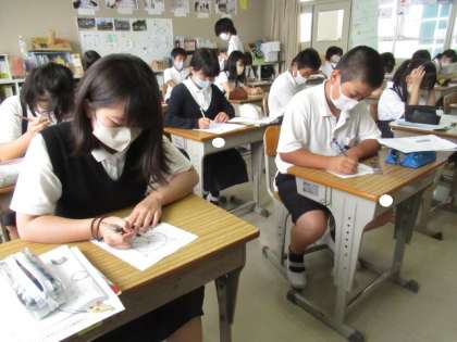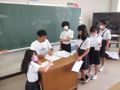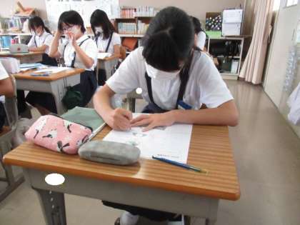 円の直径や面積を求める学習をしました。復習プリントをしたあと、チャレンジ問題をしました。