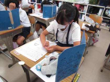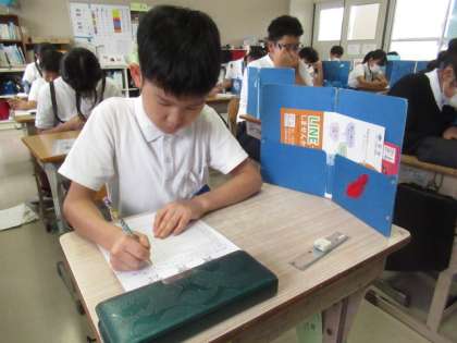 家庭科のテストをしました。テストが終わった後、「1学期のふりかえり」を書きました。