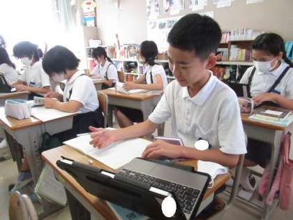 「ブックトーク」の準備をしました。タブレットで調べたり、ノートにメモをしたりしました。