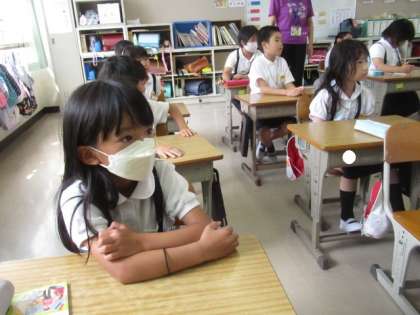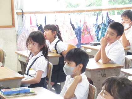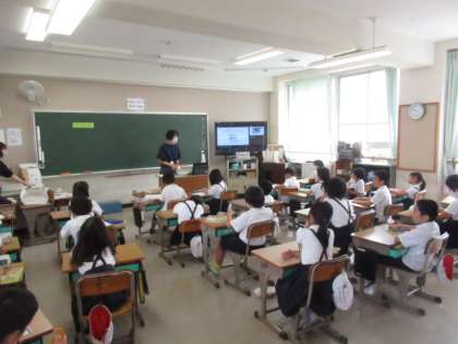 榎小学校の栄養教諭の先生に来ていただき、「食育」の学習をしました。「夏野菜」について教えてもらいました。