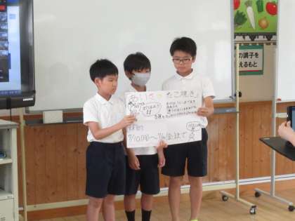 月曜朝礼がありました。校長先生から「O157の話」「黙とう」がありました。「児童会」「保健委員会」「給食委員会」がありました。