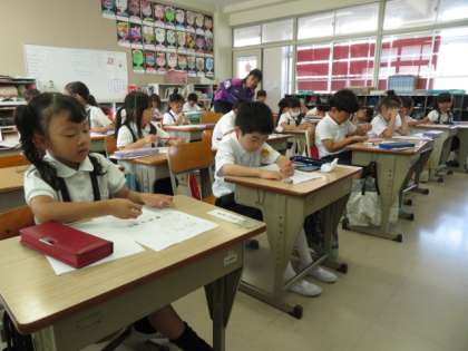 1学期の復習をしました。集中して練習プリントに取り組んでいます。