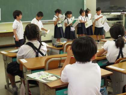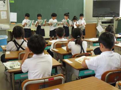 「おむすびころりん」の音読をしました。みんなの前で堂々と読むことができました。