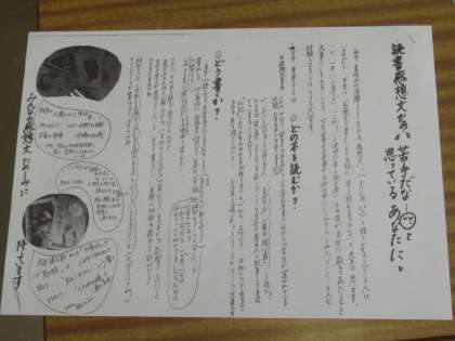 読書感想文の練習をしました。書き方などを先生から聞いています。