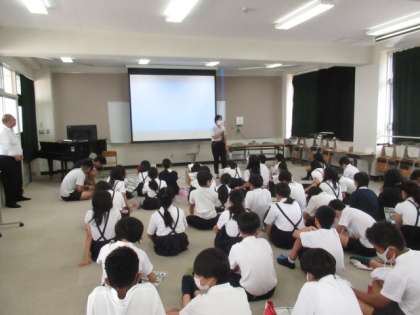 堺警察より講師の先生に来ていただき、「非行防止教室」を行いました。夏休みを前に、インターネットの危険などについて教えていただきました。