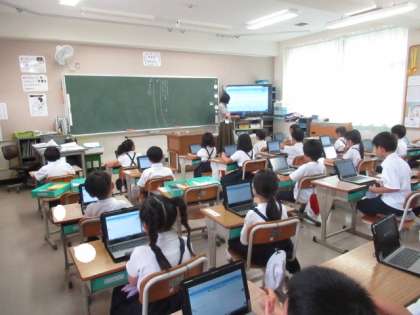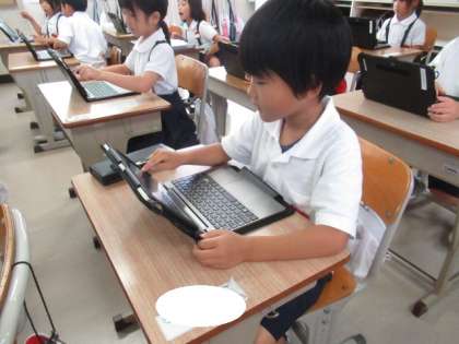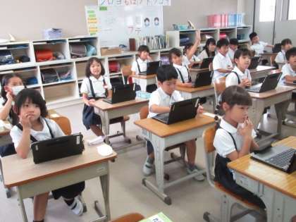 タブレットの機能を学びました。「ごはんとパン朝食べたのはどっち?」の例でやり方を練習しました。