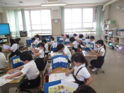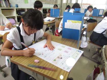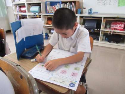 算数テストをしました。集中して取り組んでいます。
