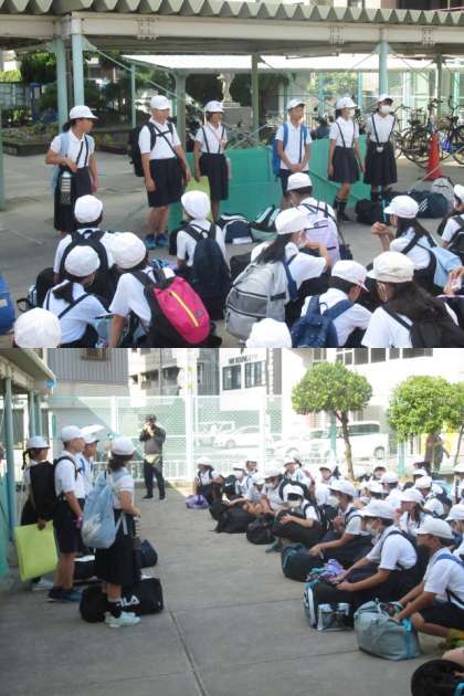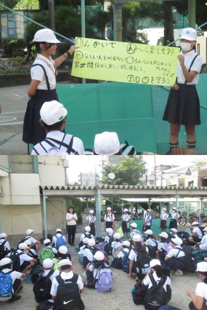 5年生の臨海宿泊学習です。出発式を行い、予定通り出発しました。