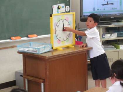時計の学習をしました。時計を見て、気づいたことを発表しました。