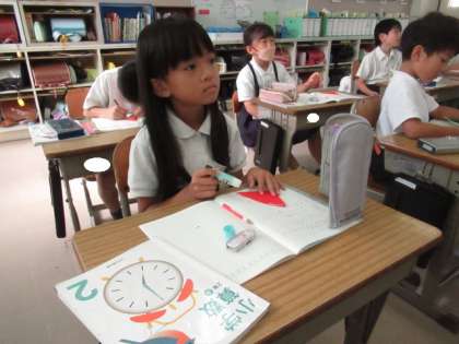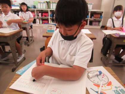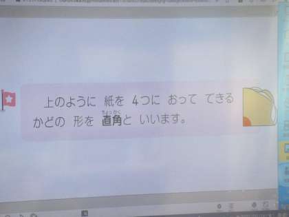 三角形、四角形の学習をしました。折り紙を折って、角の形について調べました。