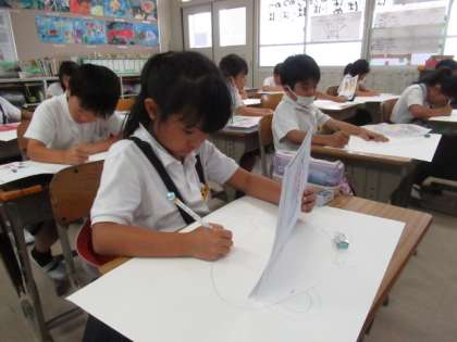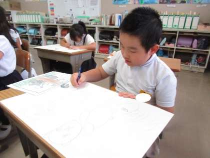 「ふしぎなたまご」をしました。たまごからうまれてくるものを考えて描きました。