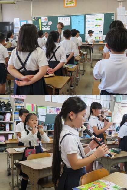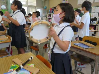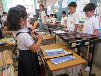 「ゆかいな木琴」の合奏をしました。元気に歌を歌いながら、楽しく学習を進めています。