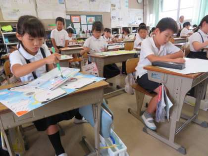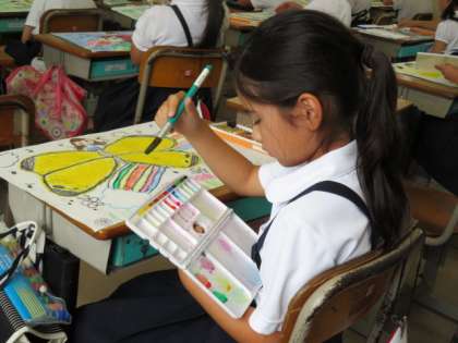 「こん虫の世界に入ったぼく・私」の制作を進めています。いろいろな工夫が見られます。