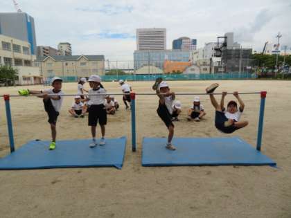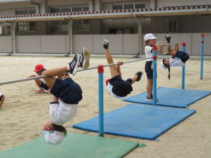「鉄棒を使った運動あそび」の学習です。いろいろな技に挑戦しました。