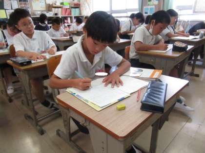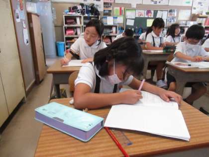 「あまりは、どうすればよいのか」を考えました。教科書の問題を解いて、考えを発表しました。