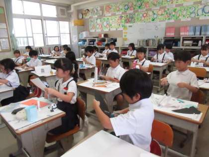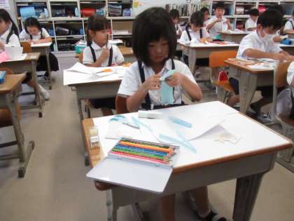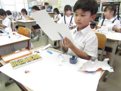 図工をしました。「まち」を作りました。自分で工夫して作りました。