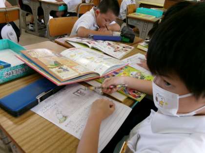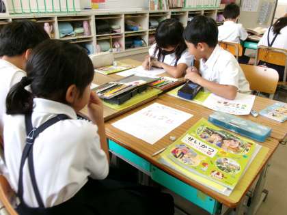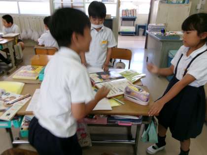 1年生とのおもちゃランドに向けて、どんなおもちゃを作るか話し合い、計画書を書いています。