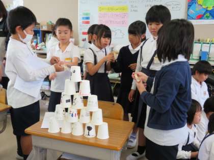 「おもちゃランド」の制作を進めています。各グループが準備したお店を、お客さん役で回ってみました。