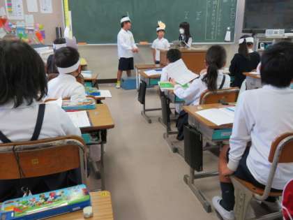 「お手紙」の音読劇をしました。お友達のグループのよいところを発表しました。