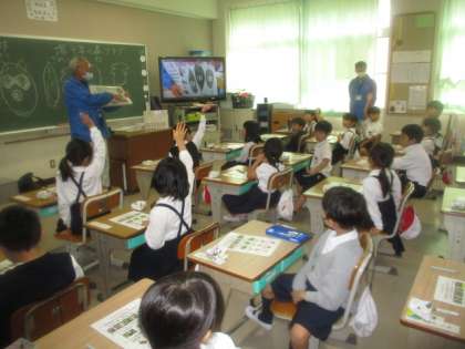 今日堺千年の森クラブの方々が、どんぐり教室を開いてくださいました。くぬぎとまてばしいを使って、かわいいタヌキを作りました。どんぐりクイズで、日本にどんぐりが何種類あるのか、どんぐりの木をどうして植えるのかなど、楽しくどんぐりについて学習することができました。かわいいタヌキさんと、クイズの紙を本日持って帰っています。おうちでも、話を聞いてあげてください。